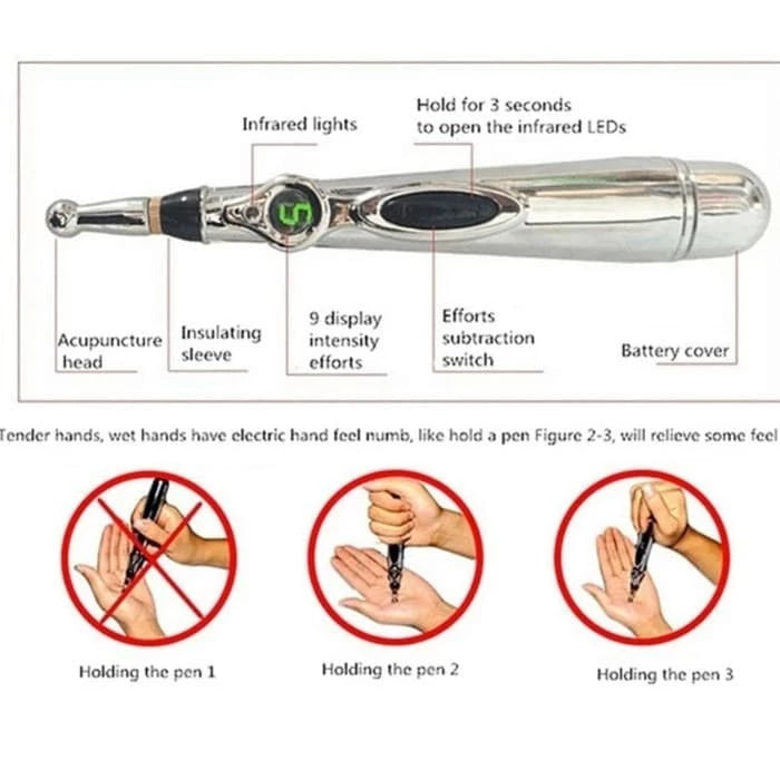Este lápiz combina la tecnologÃa de acupuntura en un dispositivo portátil, sencillo y sin agujas. En solo minutos, te brinda la sensación de bienestar de una sesión profesional: más relajado, menos tenso, con mejor circulación.